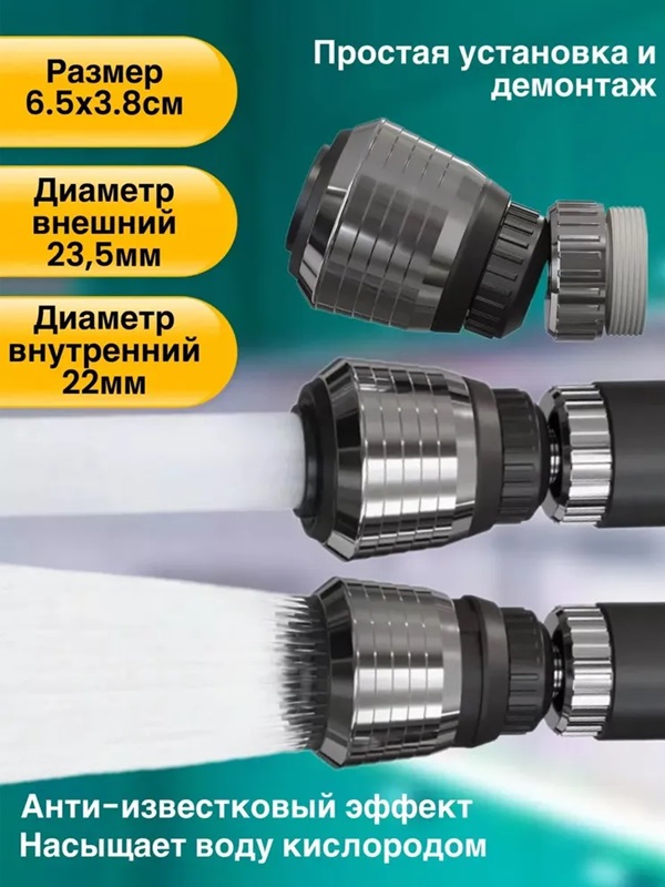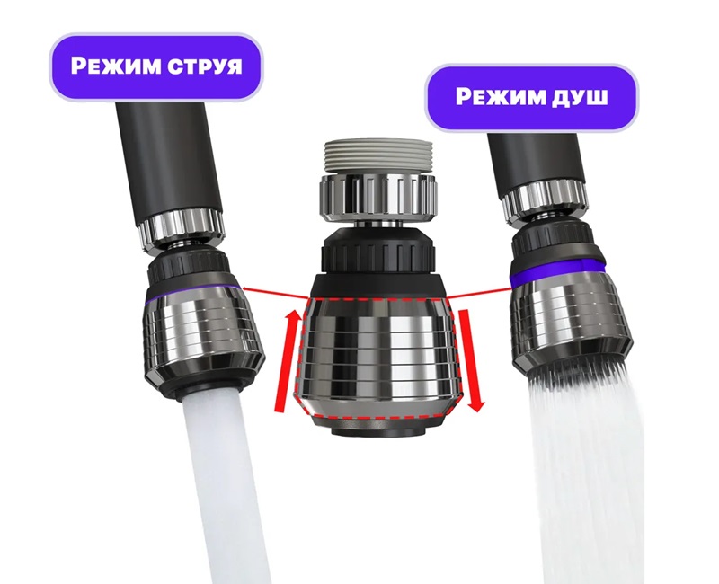 Насадка-аэратор на кран GSMIN ZF-227, с поворотной головкой, для экономии воды, серебристая, 2 режима работы: обычный и