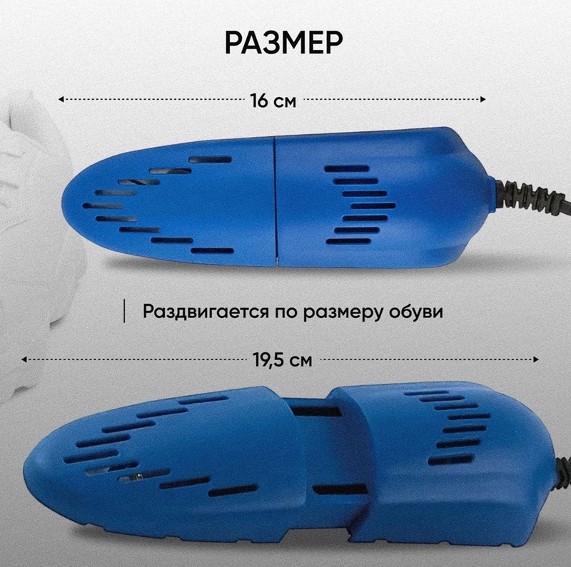 Сушилка для обуви раздвижная (синяя), регулируемая длина: 16-19,5см Обеспечивает быструю сушку обуви. Благодаря раздвижн