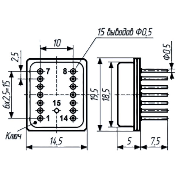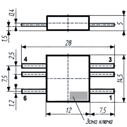 542НД5, 402.16-7, 'ОС', зол 4 изолированных диода, U=50 В, I=0.5 А.