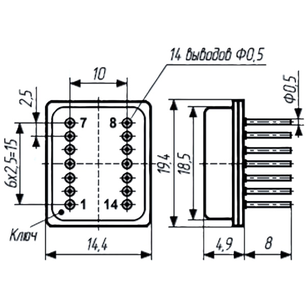 564ЛП2 (CD4030A) ) микросхема, никель, 401.14-5 (Ni), '5' 4 логических элемента Исключающее ИЛИ