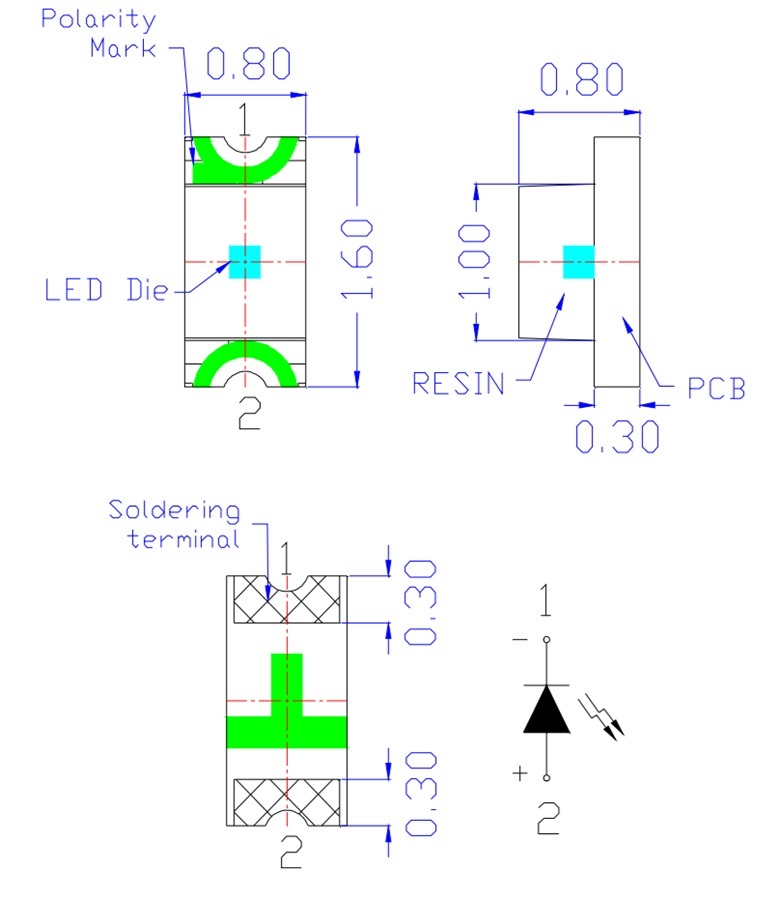 FYLS-0805UGC, SMD / 2х1,25мм / зеленый / 570нм / 40мкд / прозрачный / 130°, FORYARD Светодиод