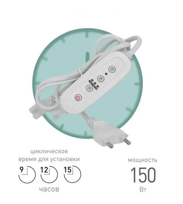 Таймер механический для фитолампы ЭРА FITO-LINETIME, с вилкой, время работы 9,12 или 15ч / длина провода 1,5м, ЭРА Примен