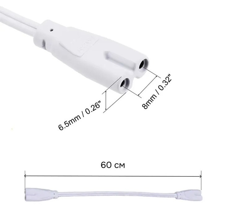 Провод для соединения фитоламп для растений, двухконтактный, 60см, белый, для последовательного соединения линейных свет