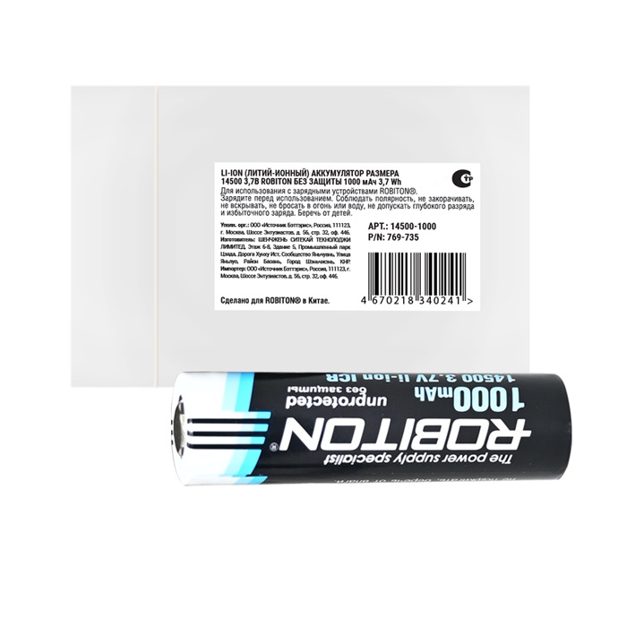 Аккумулятор LiIo 3.7V 1800mAh LI18650-1800NP-PK1, [3,7В] [1800мАч] [18х65мм][цилиндр], Robiton