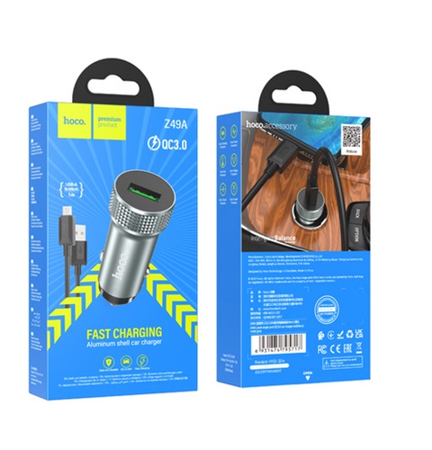 Зарядное устройство автомобильное Hoco Z49A + кабель USB- micro USB, серый металлик, 3А / быстрая зарядка / длина кабеля 1