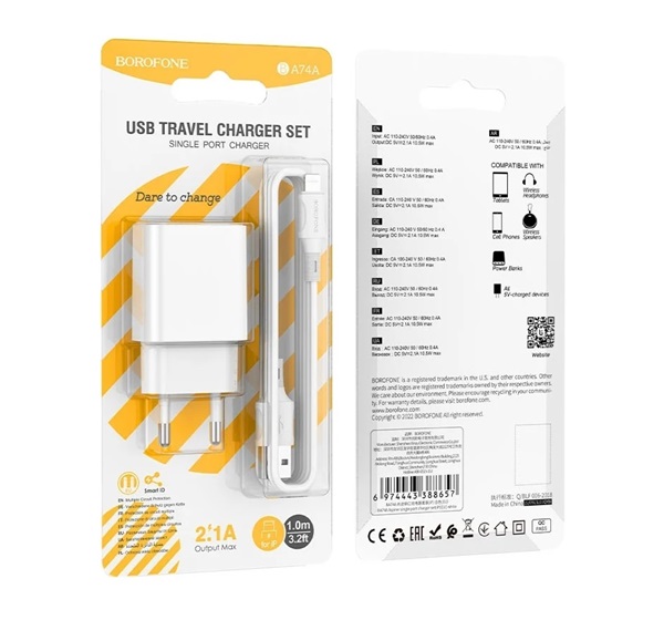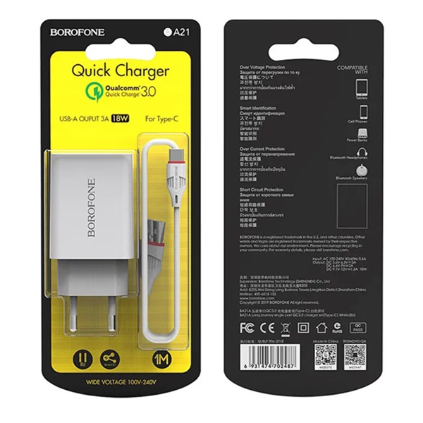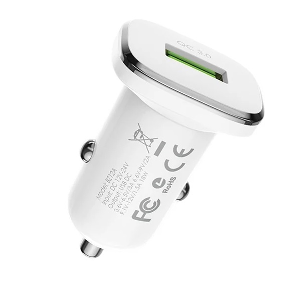 Зарядное устройство автомобильное Borofone BZ12A USB QC3.0, белое, 3А / быстрая зарядка / без кабеля, Borofone Встроенный
