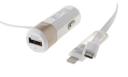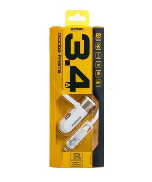 Зарядное устройство автомобильное Remax RCC102 2в1 (Lightning 8-pin+ micro USB), белое, 3,4А / 5В / длина кабеля 1м, Rema