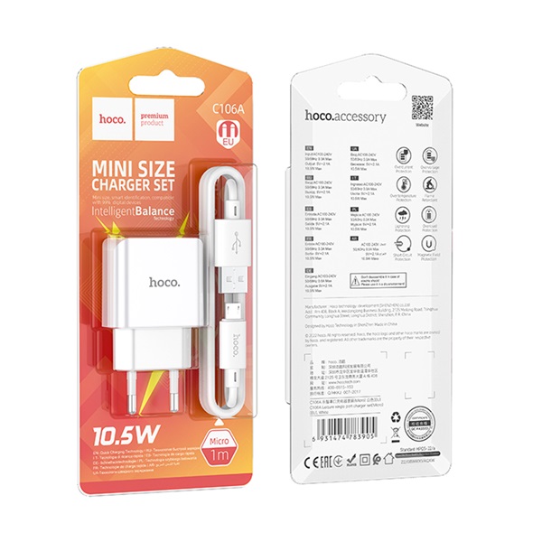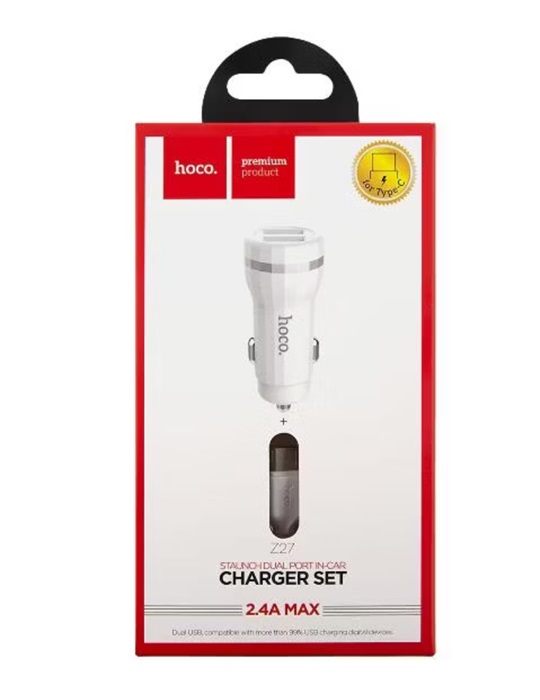 Зарядное устройство автомобильное Hoco Z27 2USB+ кабель USB- micro USB, белое, 2.4А / 5В / длина кабеля 1м, Hoco Зарядное