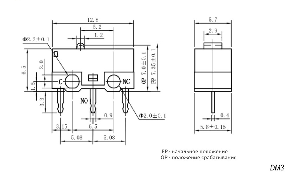 Микропереключатель MSW-02B (KMCS-01-02A) с лапкой , 5A / 250V / ON-(ON), Китай