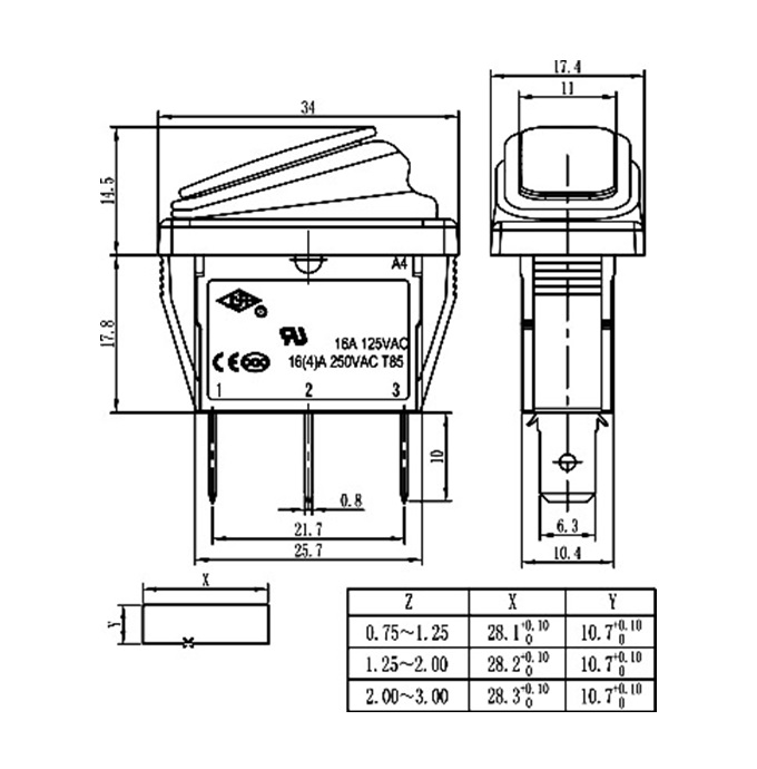 SWR YSR-22-22 (L-KLS7-022-102011BB), ON-ON / 19,2* 32мм / 250V / 3A , KLS