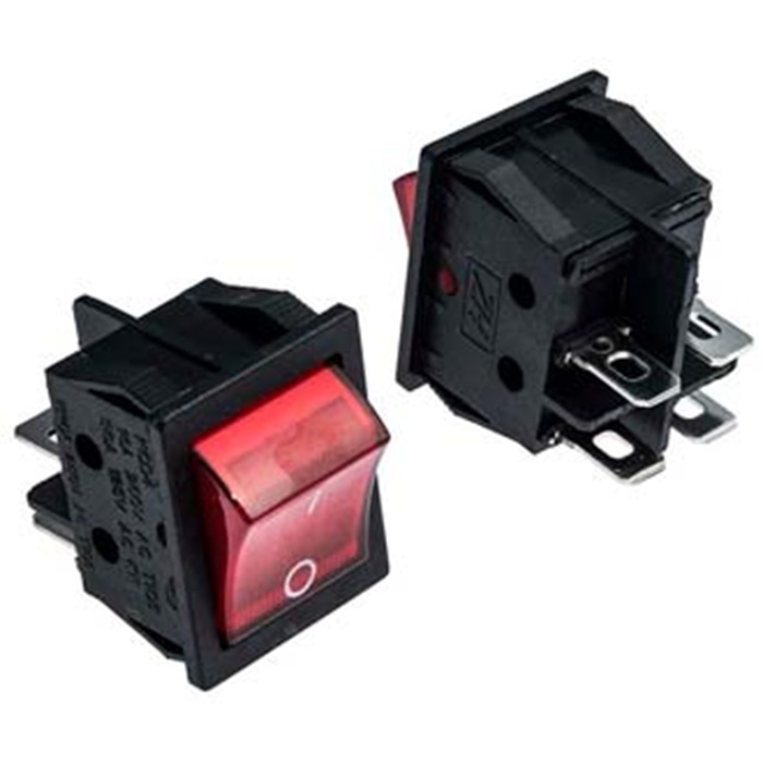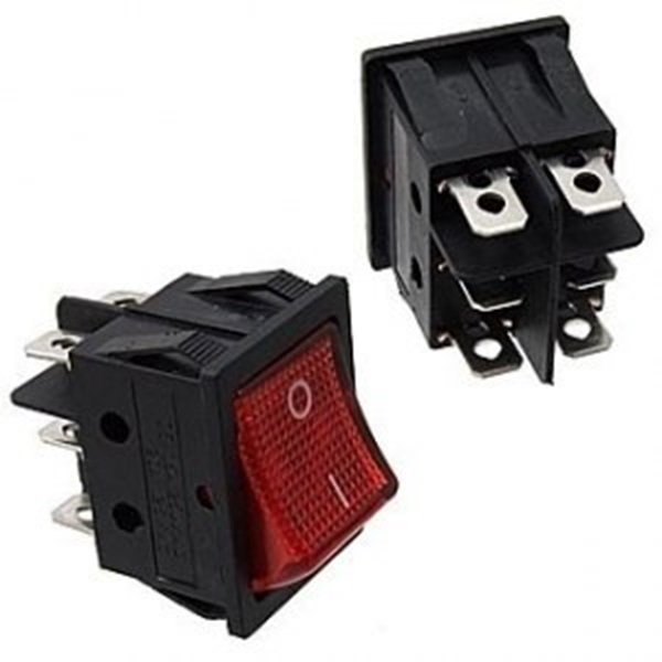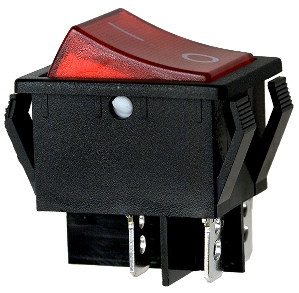 SWR 4201-4С (IRS-201-3C) IRS черн. / красный, ON-OFF / с подсветкой (неоновая лампа / 22,7*31м / 250В / 15А (KCD4-301-C R / 4P