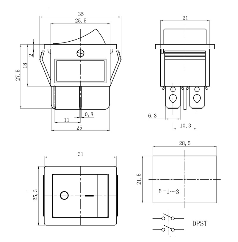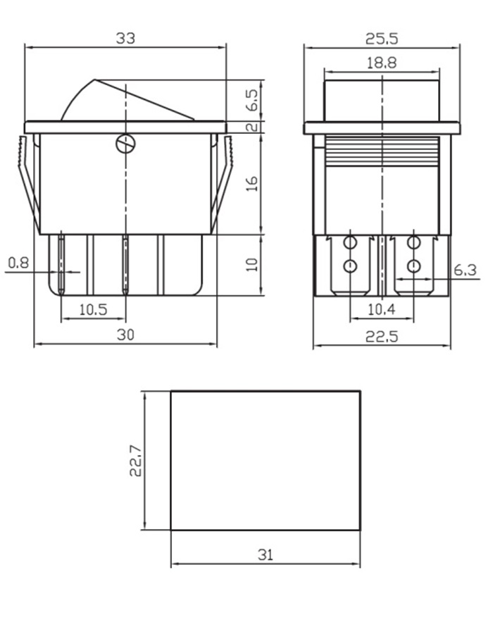 SWR 3107 (RS-101-9C) черн. / черный, ON-OFF / без подсветки / 20мм / 250B / 6A, Китай Диаметр корпуса : 23 мм.