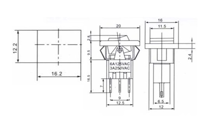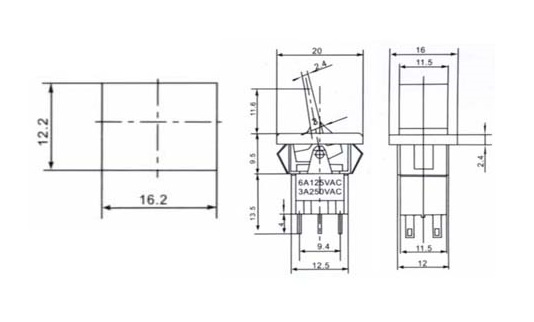 SWRS-203-E5, тумблер ON-OFF-ON / 12,2*16,2mm / 250B / 3A , Jietong