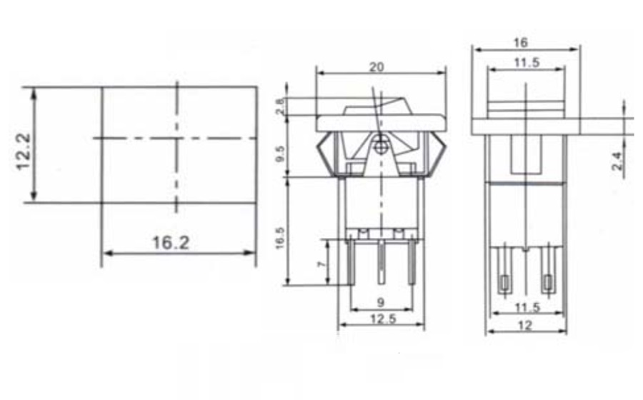 SWRS-202-E5, тумблер ON-ON / 12,2*16,2mm / 250B / 3A , Jietong
