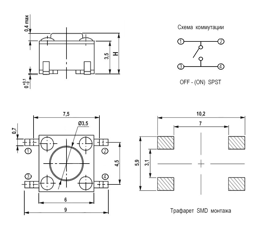 Микрокнопка IT-0350, тактовая 6x3x5мм, OFF - (ON), Китай