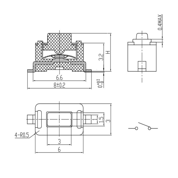 Микрокнопка DTSMW-3.0N (DTSMW-66N-V-T / R) (KAN0647-0311B) SMD, 6.2*6.3*3.1 , усилие нажатия 160гс , DPT