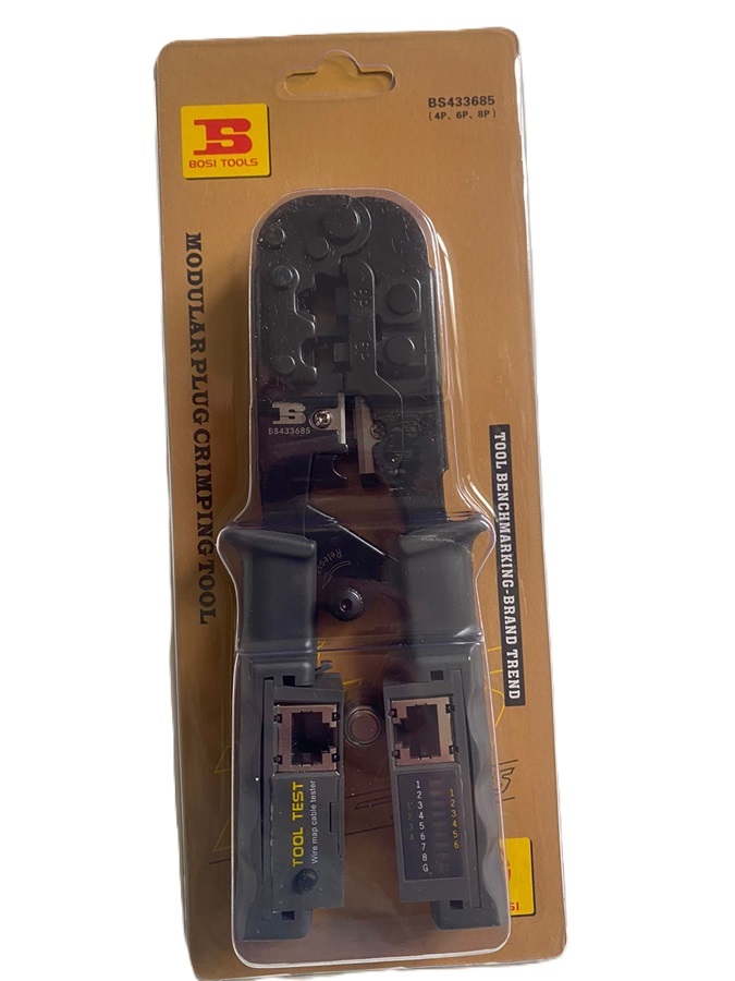 Кримпер BS433685 (пресс-клещи) + кабельный тестер, Обжим клемм RJ 4P / 6P / 8P., Bosi Tools Встроенный компактный тестер каб