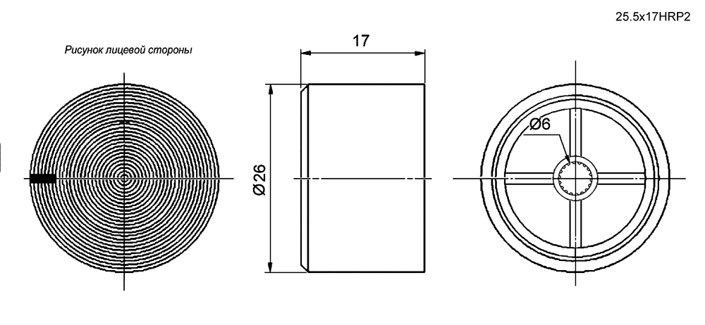 Ручка M4T25.5 / 17HRP-2 чёрная, круглая с риской, на вал 6мм (25.5x17HRP2), Китай