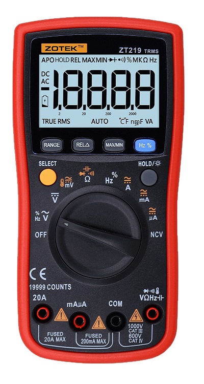 True RMS, 19999 отсчетов. NCV.180*90*45мм, 320г, 1.5В ААА * 2шт.