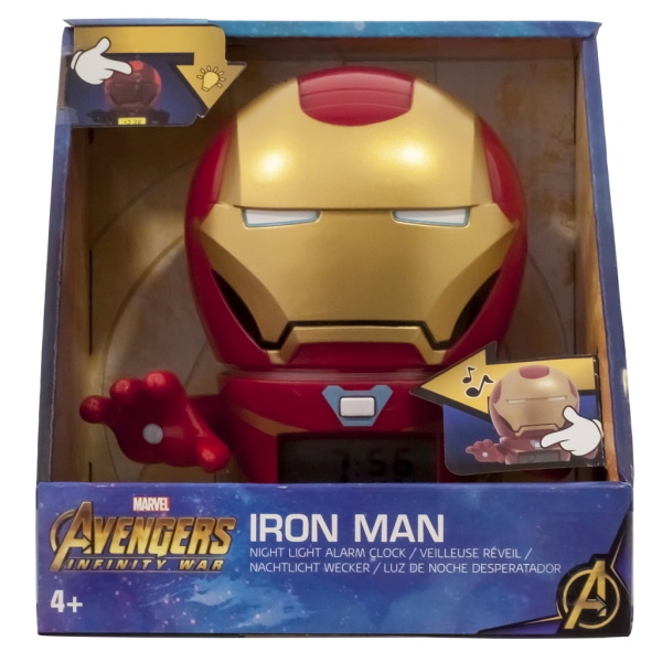 16.5 *15.5*11.5 см. Будильник в виде минифигуры любимого героя «Железный человек», по форме напоминающий лампу накаливания, оснащен цифровым дисплеем с подсветкой и функцией повтора звукового сигнала.