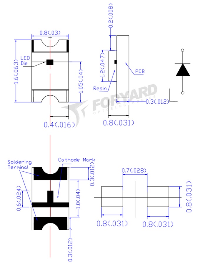 Характеристики: SMD 1,6х0,8мм/белый/600мкд/7000K/прозрачный/130°