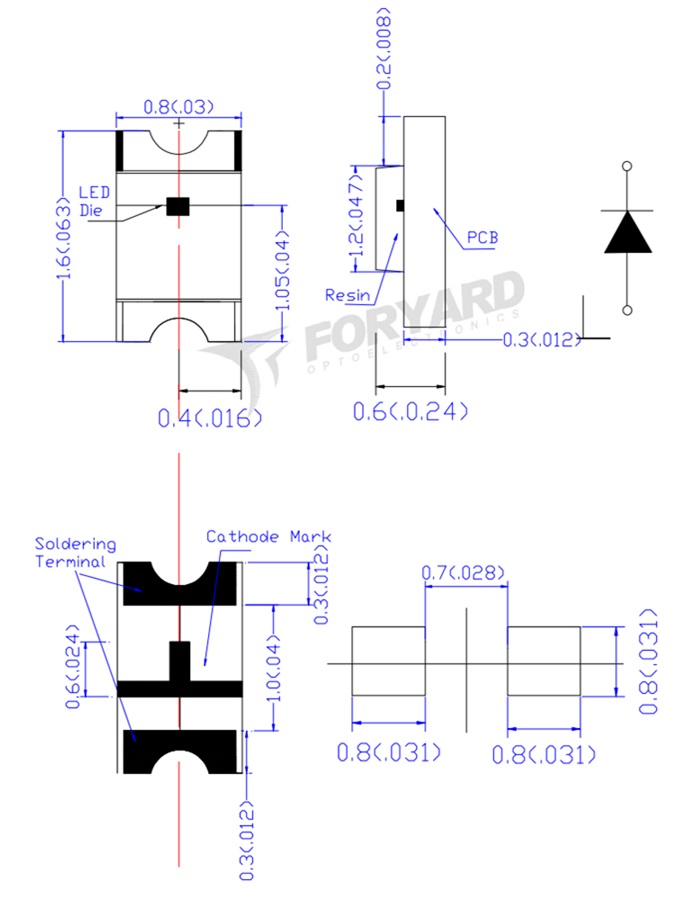 Характеристики: SMD 1,6х0,8мм/зеленый/568нм/65мкд/прозрачный/130°