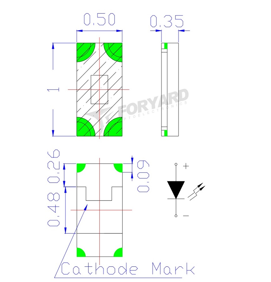 Характеристики: SMD 1х0.5x0.35мм/синий/468нм/120мкд/прозрачный/130°