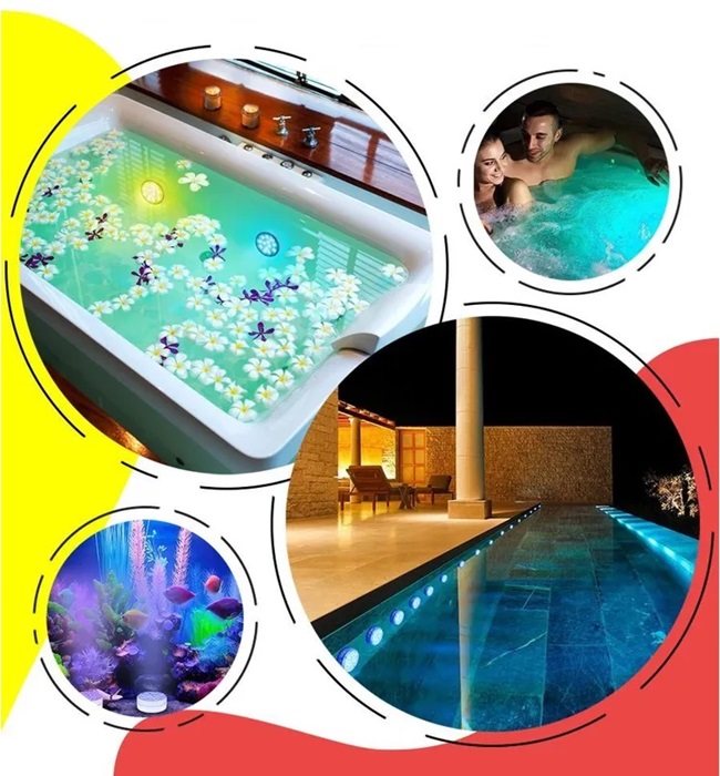 Светильник светодиодный GSMIN PL10 водонепроницаемый для бассейна, IP68, 10 LED, RGB, 16 цветов, на батарейках, 4 режима
