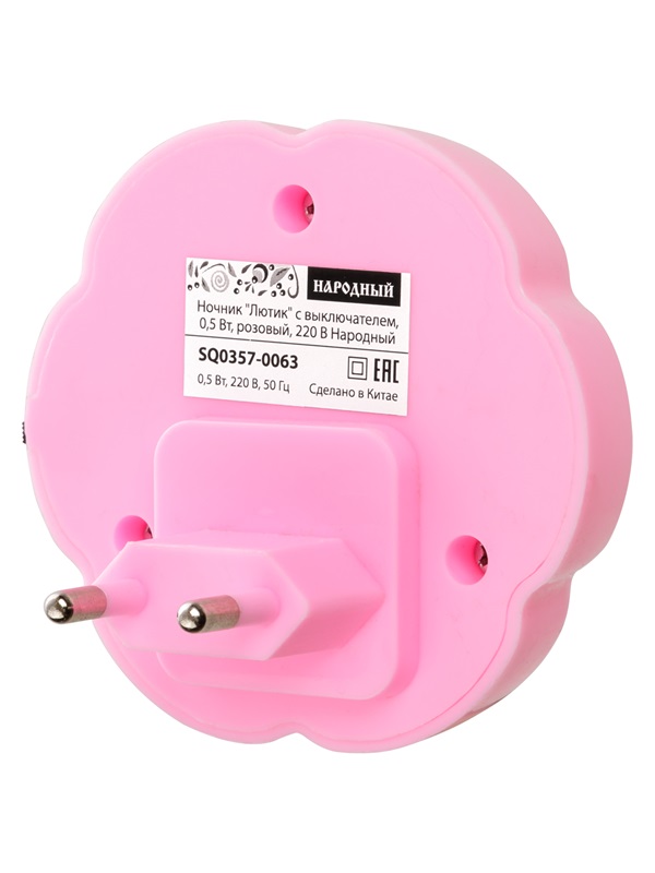 Ночник 'Лютик' с выключателем, 0,5 Вт, розовый, 220 В Народный, SQ0357-0063, TDM