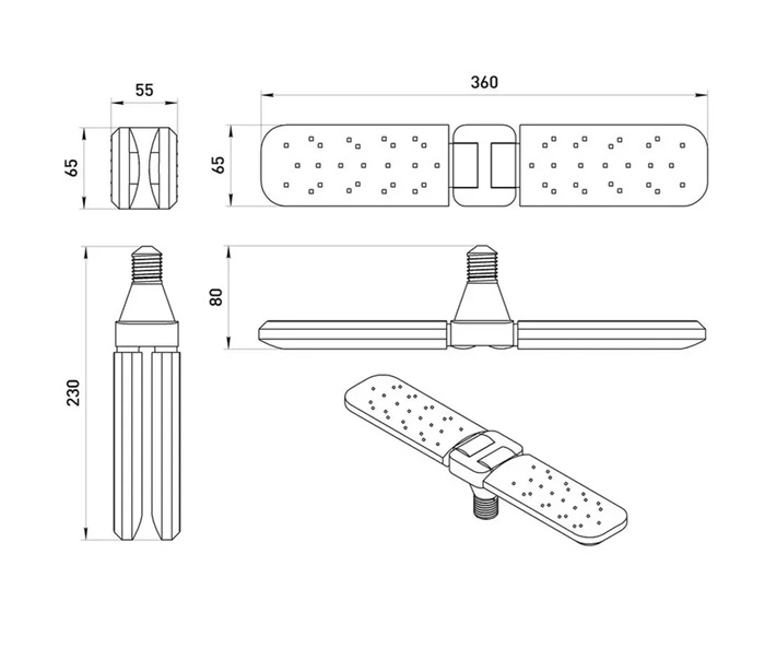 Фитолампа для растений ЭРА GREEN LINE ФИТО A65-20W-PL-E27-GR, светодиодная , 2-х лепестковая / полный спектр / 30Вт / Е27 ,