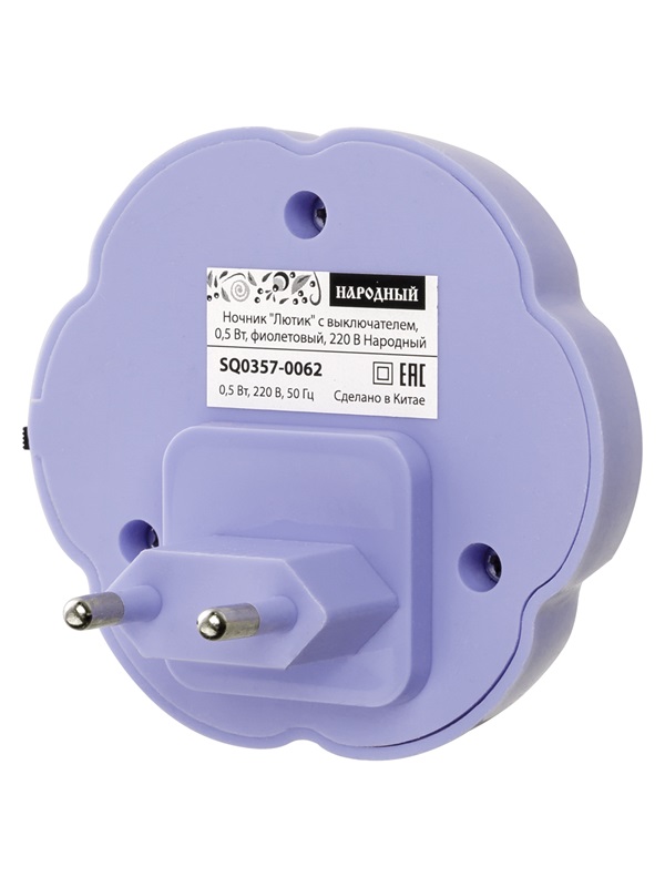 Ночник 'Лютик' с выключателем, 0,5 Вт, фиолетовый, 220В Народный, SQ0357-0062, TDM