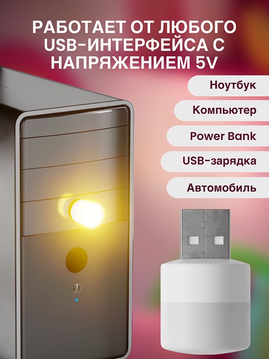 Светильник USB светодиодный GSMIN B40 для ноутбука, теплый свет, 3-5В, белый, GSMIN Точечное освещение для чтения, подсв