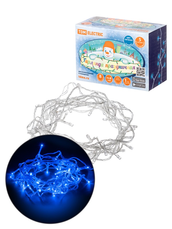 Гирлянда светодиодная СГ50Г5, голубая, 5м, 8 режимов, 250В , SQ0361-0034, TDM