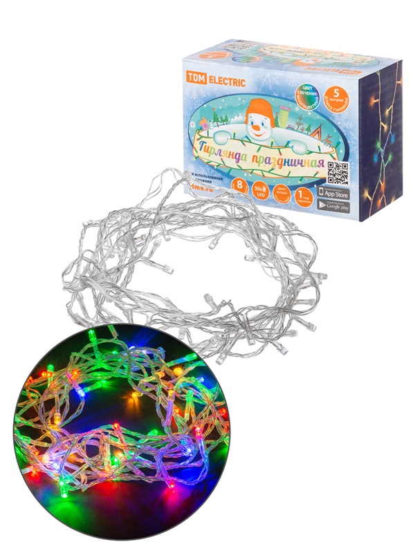 Гирлянда светодиодная СГ50M5, многоцветная, 5м, 8 режимов, 250В, SQ0361-0035, TDM