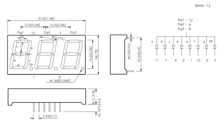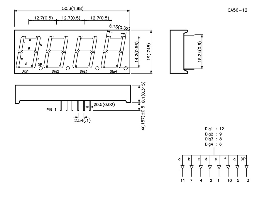 Цифровой индикатор KEM-3461AR (Red), 4 знака , Китай Высота знака - 9,2 мм. Сила света (на сегмент) не менее 14 миллик