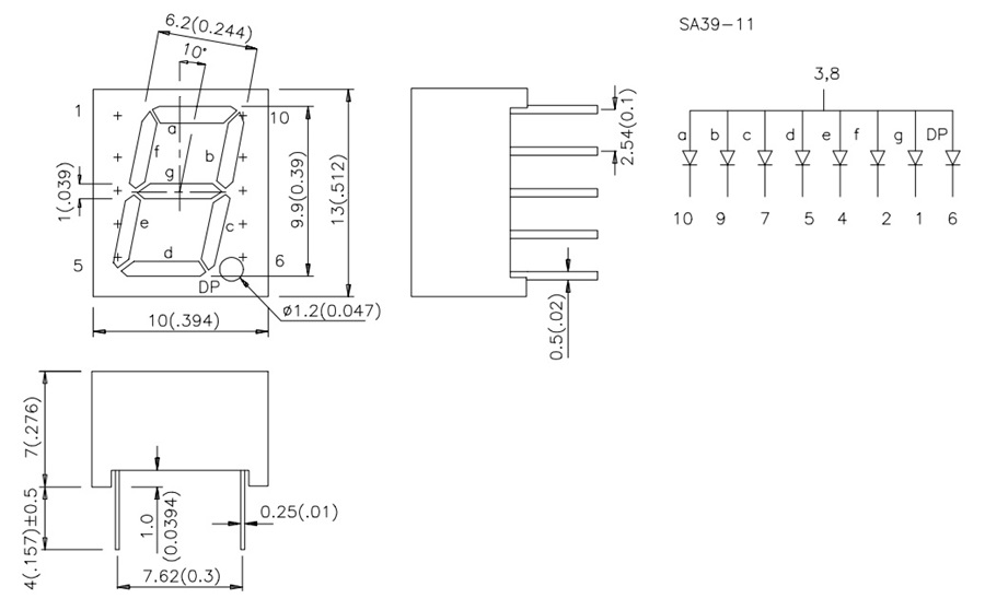 SA39-11GWA, Одноразрядный цифровой дисплей , Kingbright 9.9mm / single digit numeric display / green / 568nm / 1900-6400ucd