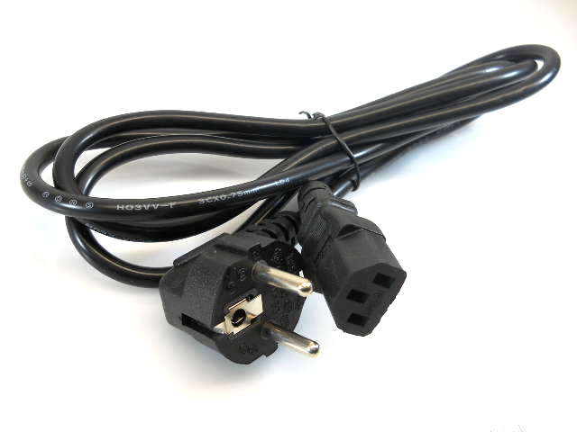 Шнур СЕТЬ SCZ-1R 1.8м, вилка угловая/ розетка прямая, черный, 3*0,75мм, ~220В, Китай