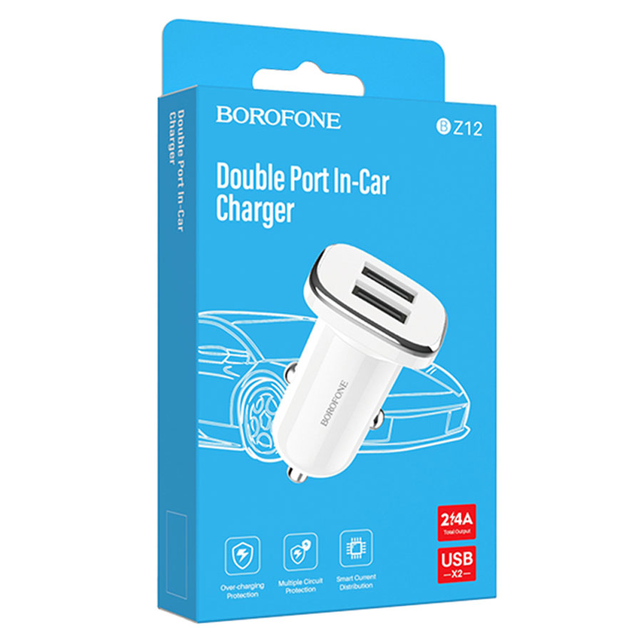 Зарядное устройство автомобильное Borofone BZ12 Lasting power 2*USB A, белое, 2.4А / 12Вт / без кабеля, Borofone Предназна