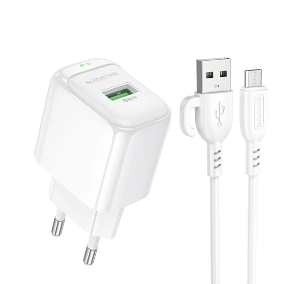 Характеристики: СЗУ/разъем USB A- microUSB/ длина кабеля 1м/ протоколы QC/FCP/AFC