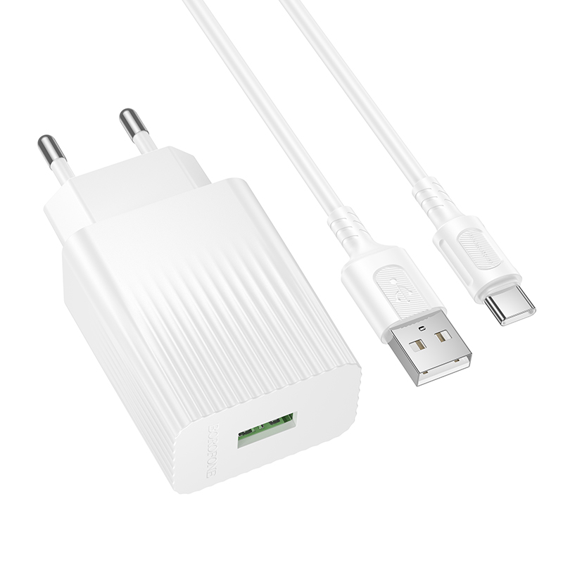 Зарядное устройство Borofone BAS72A USB-A 3А,18Вт, быстрая зарядка QC3.0, кабель с USB Type-C, белое, СЗУ/разъем USB A- Type-C/ длина кабеля 1м/ протоколы QC/FCP/AFC, Borofone