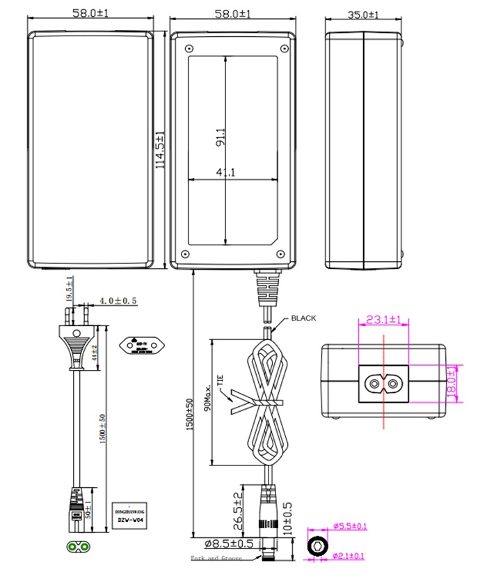 Блок питания: 19V 3.42А 2.5*5.5, импульсный, угловой штекер, для ноутбуков без сет. шнура