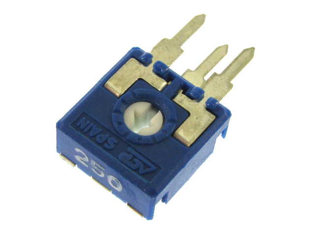 Резистор подстроечный. Хар-ка: линейная, ротор - 'стрелка' под отвер, регулировка сбоку, 9,8x10mm, расстояние между выводами 5,0/2,5mm