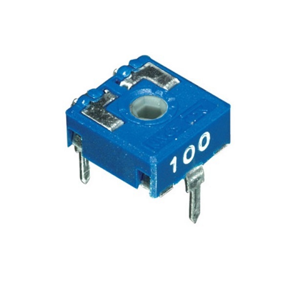 Резистор подстроечный. Хар-ка лин, 0,15W, ротор - 'стрелка' под отвер, регулировка сверху, 9,8x10mm, расстояние между выводами 5,0/10mm