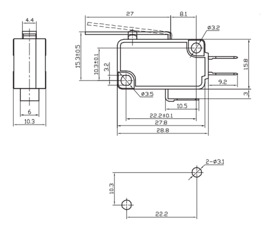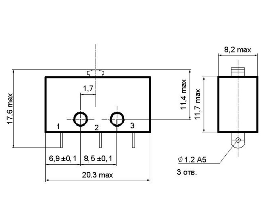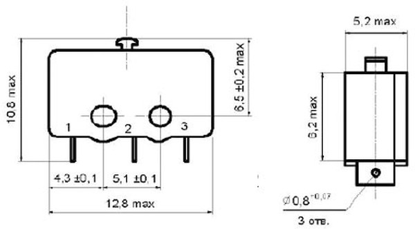 Микропереключатель KW3A 3A 250V (SM5-03P) с лапкой, ON-(ON) SPDT / 250(125)В / 3(5)А / -25...+120 °C, Китай