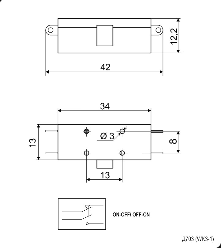 Микропереключатель SX-04 (SX-A1-YS) , ON-(ON) DPDT / 60В / 0.2А, Китай