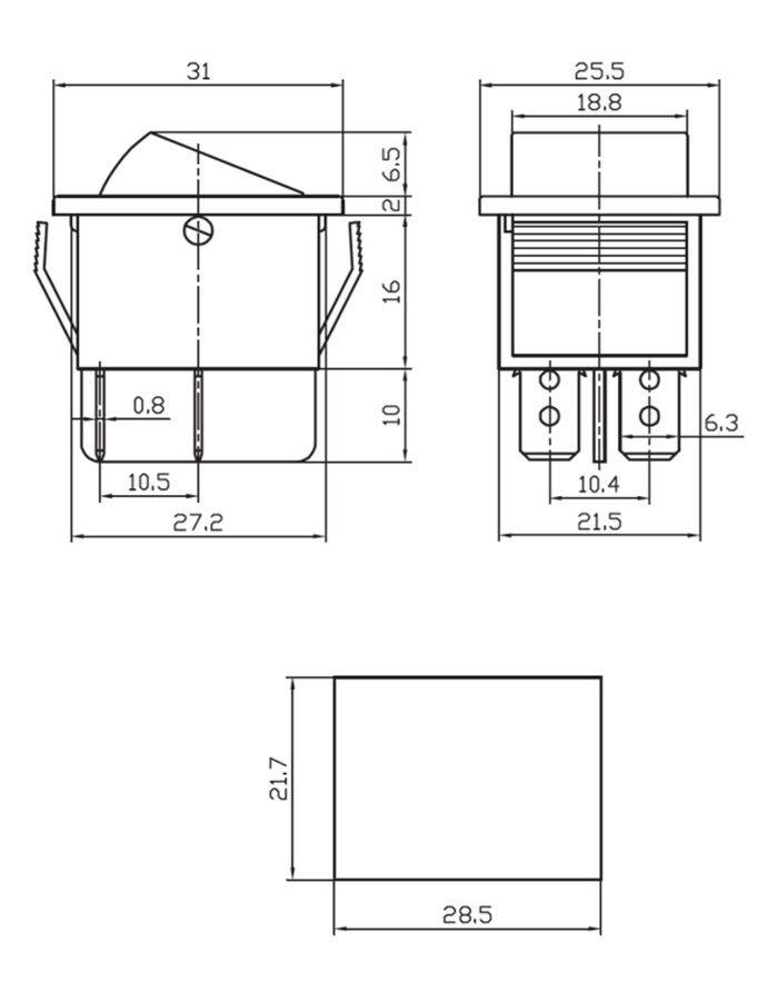 SWR 3107 (RS-101-9C) черн. / черный, ON-OFF / без подсветки / 20мм / 250B / 6A, Китай Диаметр корпуса : 23 мм.