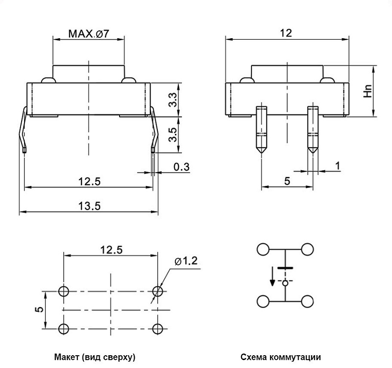Микрокнопка SWT-80-3.8 (DTS-21)(TS-12-ASP) черная, 12*12*4.3мм, CHIFUNG