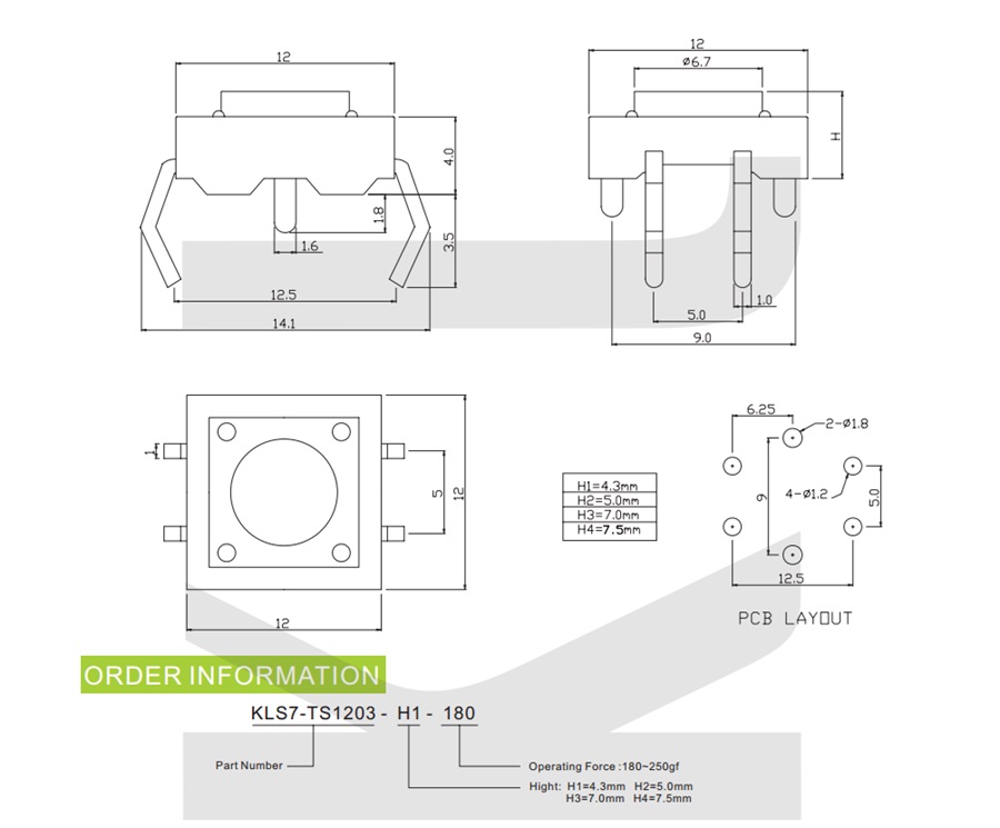 : 12*12*4.3мм, 250gf