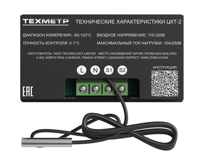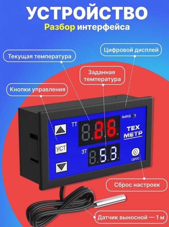 Терморегулятор (термостат) ТЕХМЕТР ЦКТ-2, синий Контроллер температуры для инкубатора, холодильника, радиаторного отопле