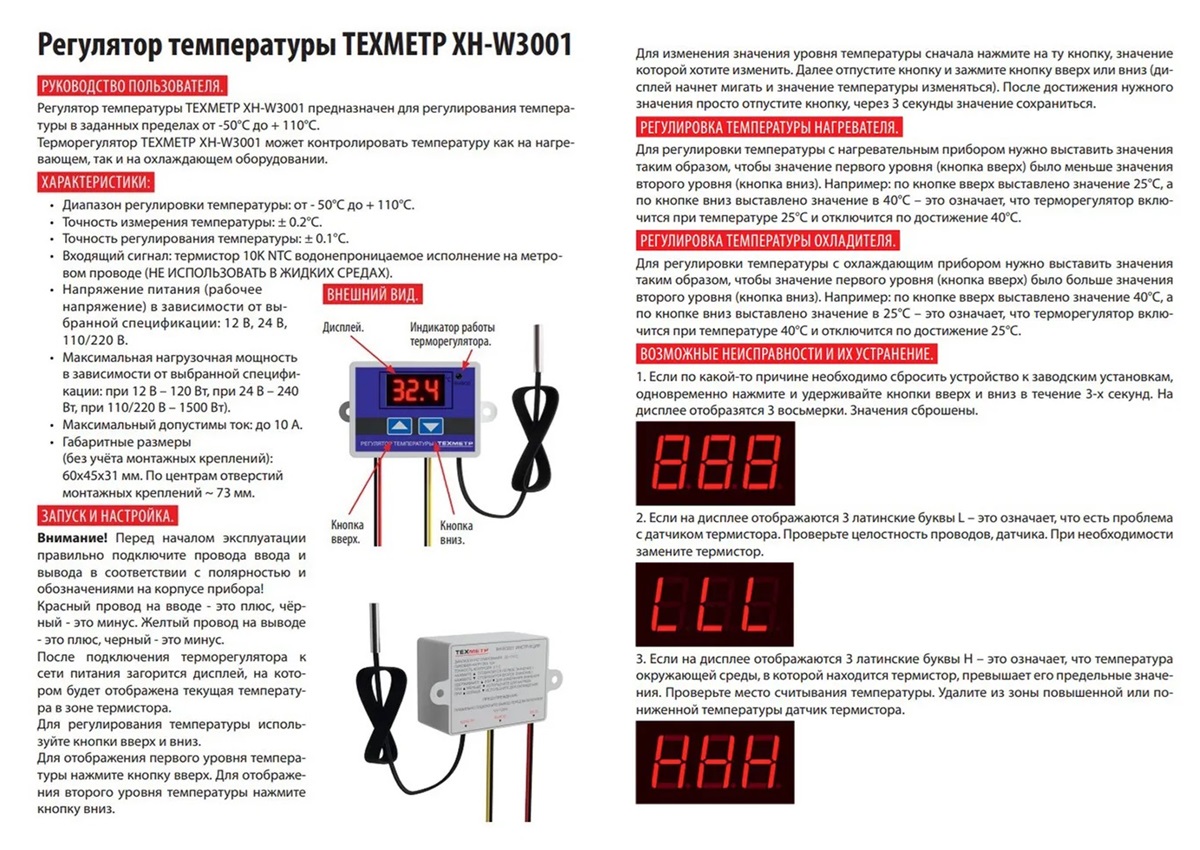 Терморегулятор (термостат) ТЕХМЕТР XH-W3001, синий, 110-220В, 1500Вт, -50+110С Контроллер температуры для инкубатора, б